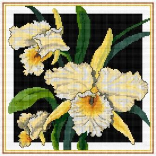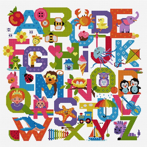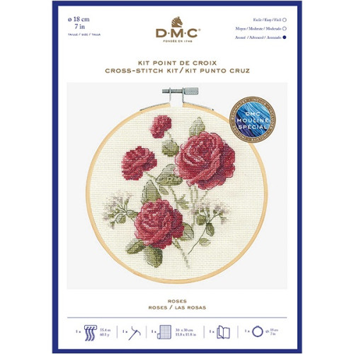 Kit includes antique white Zweigart Aida in the thread count of your choice, 36 skeins of DMC stranded cotton, needle, chart, and instructions.