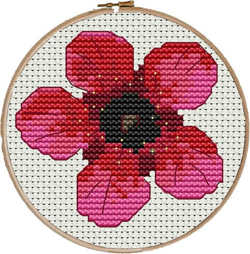 Kit includes choice of 11ct, 14ct, 16ct or 18ct white, antique white, black, or ecru Zweigart Aida, DMC stranded skeins, needle, chart, instructions, and 10cm hoop for framing. Designed by Mary Elizabeth Design Studio for Caronie.